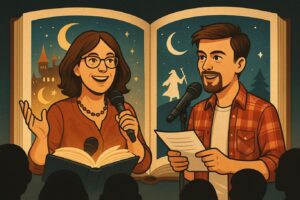 Wir haben immer ein paar Plätze frei für neue Leute, die Spaß an der Herausforderung haben und sich auf diese Weise auf der Bühne ausprobieren möchten. Das wird auf jeden Fall eine coole Erfahrung – und du sparst dir außerdem den Eintritt, wenn du dich vorab verbindlich anmeldest.